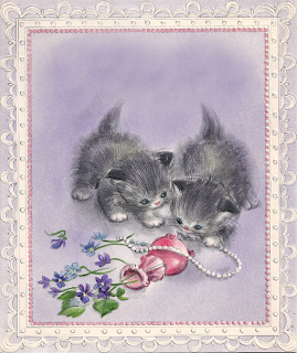 Vintage Greeting Card Kittens Playing With Pearls Free Image